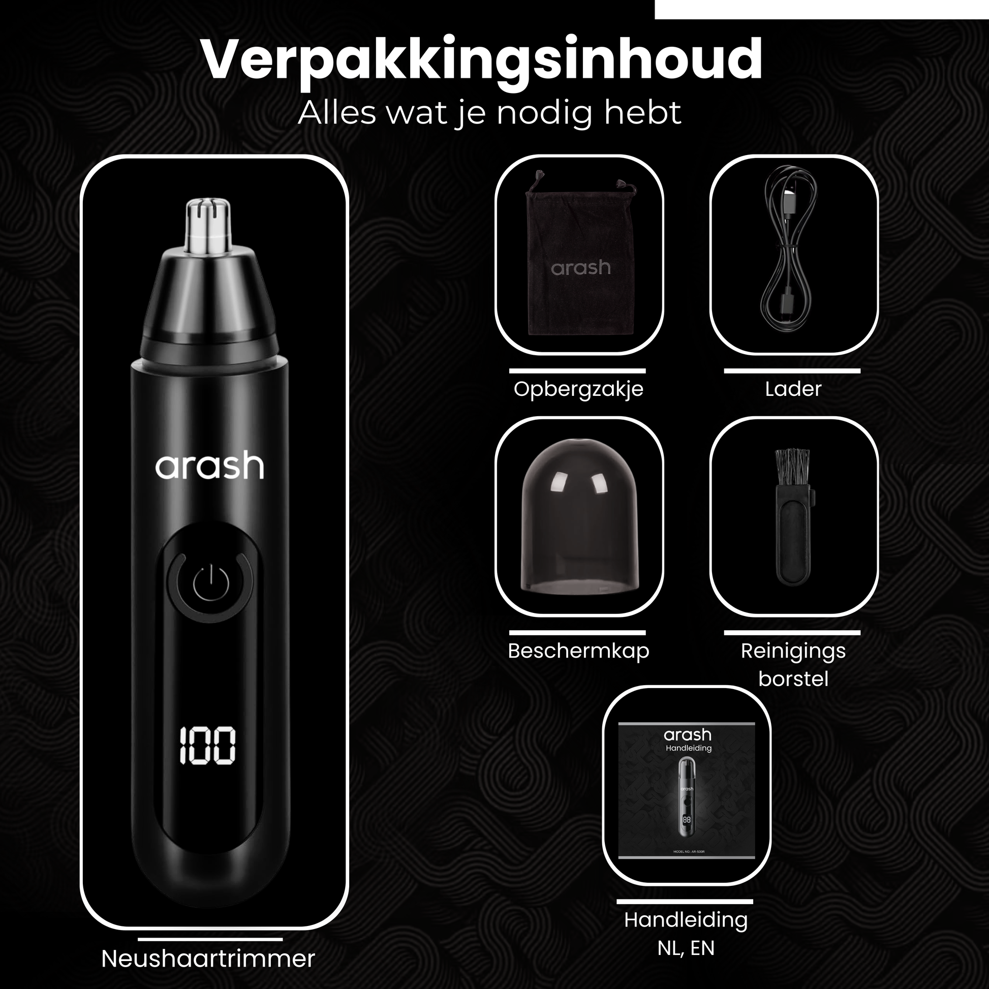Bij arash® staan kwaliteit en service centraal. Daarom krijg je naast onze 100% tevredenheidsgarantie ook 5 jaar fabrieksgarantie op de arash® Neustrimmer. Toch niet tevreden? Retourneren is altijd gratis. Ons serviceteam helpt je direct.
